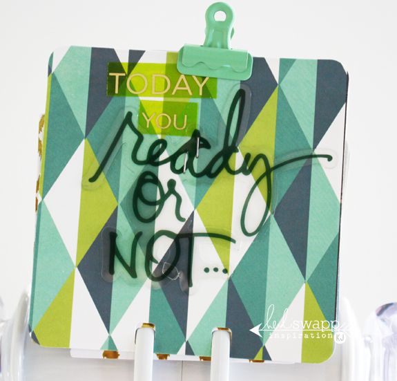 Next I added in that 4x4 Prismatic Project Life card and stapled on the Ready or Not Green acylic word from the Teal set.