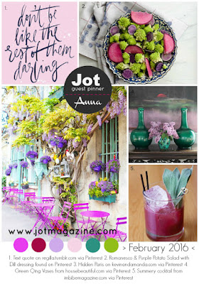 There's a gorgeous new mood board to play along with over at Jot Magazine. Such fresh and inviting colours.